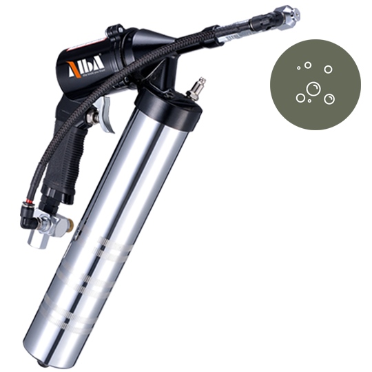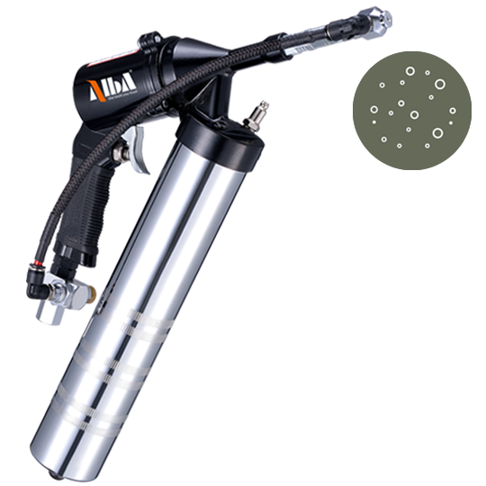 The ALBA® αtom™ technology optimizes the automatic air grease gun to Spray-Coat viscous grease onto large-scale or irregular surfaces with exceptional efficiency