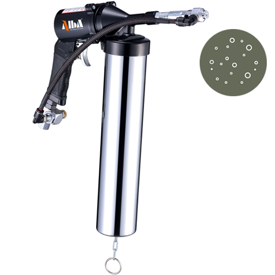 The ALBA® αtom™ technology optimizes the automatic air grease gun to Spray-Coat viscous grease onto large-scale or irregular surfaces with exceptional efficiency