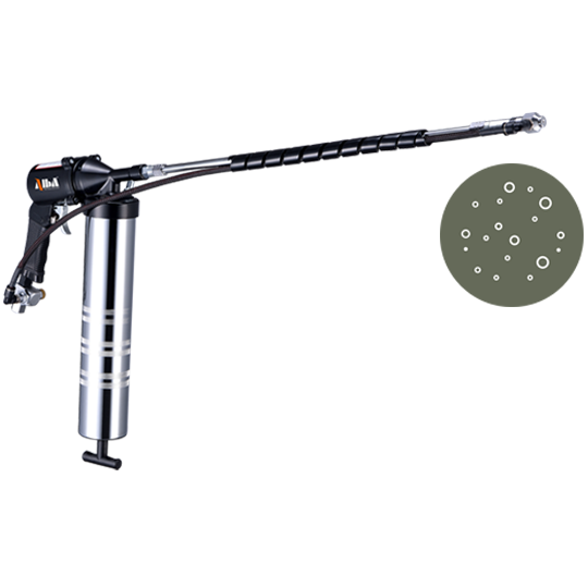ALBA® αtom™ 科技優化了連發型氣動黃油槍,使其能夠高效地將黏稠黃油噴塗至大面積或不規則表面